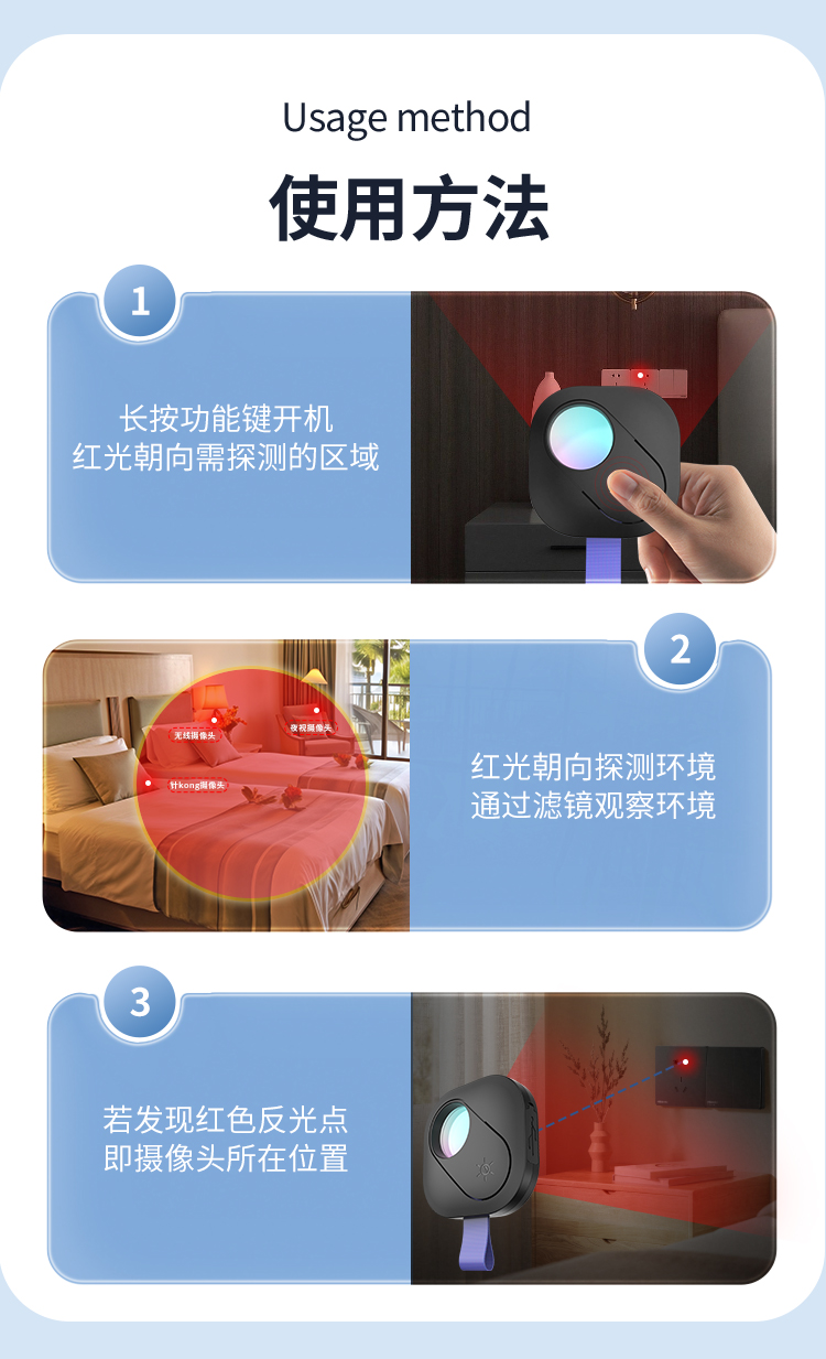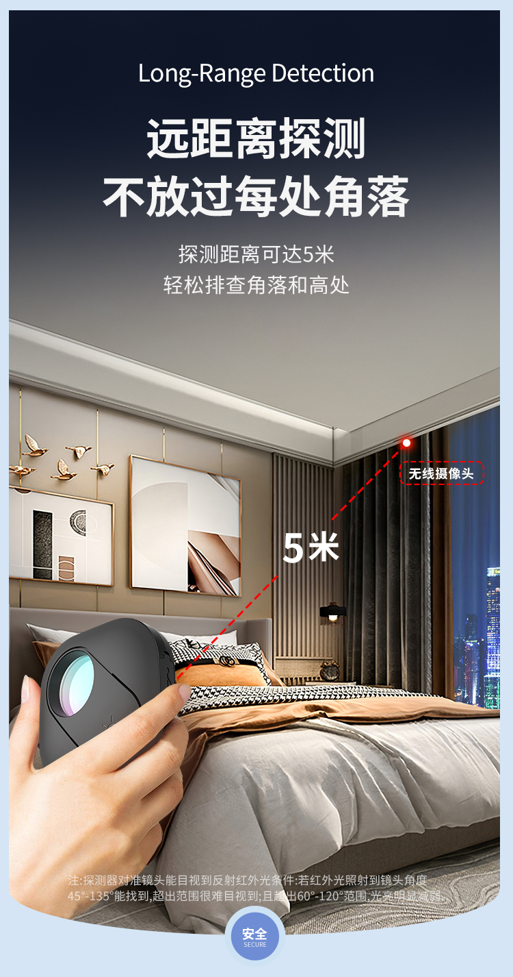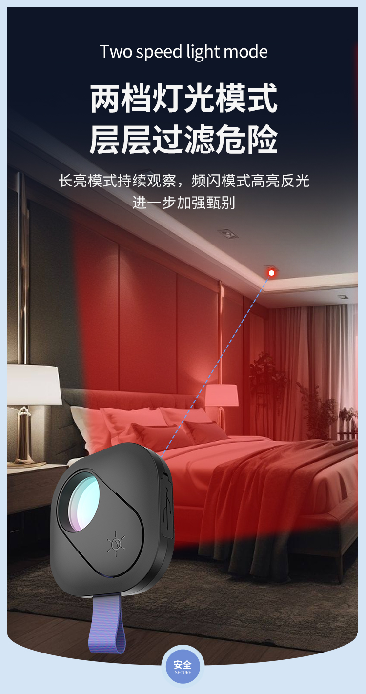 科密KD05 酒店攝像頭探測器 防拍攝檢測儀可充電紅外線防監(jiān)控掃描檢測器 賓館民宿 黑色
