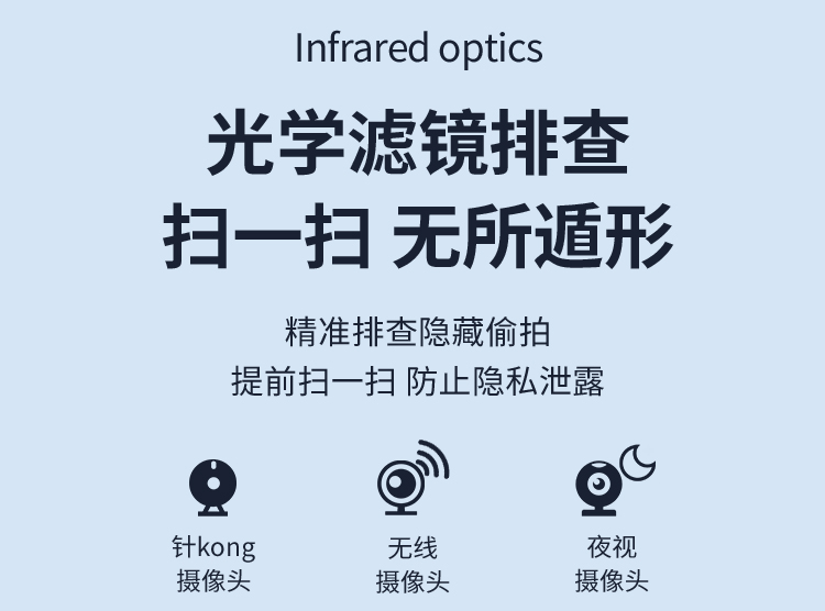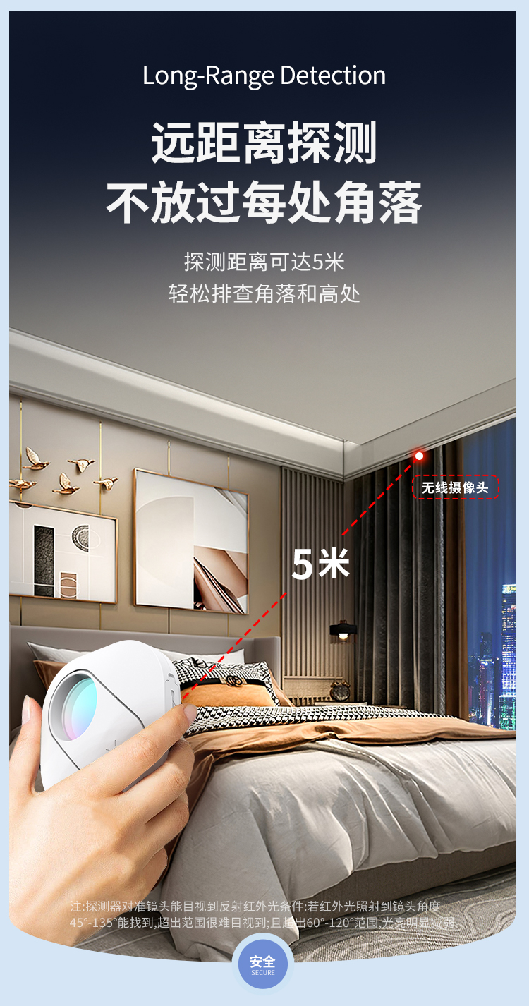 科密KD05 酒店攝像頭探測器 防拍攝檢測儀可充電紅外線防監(jiān)控掃描檢測器 賓館民宿 白色