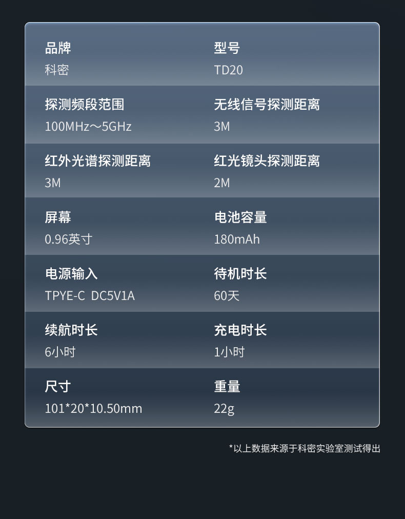 科密TD20攝像頭智能探測(cè)儀防偷拍反竊聽防定位探測(cè)器酒店防窺神器
