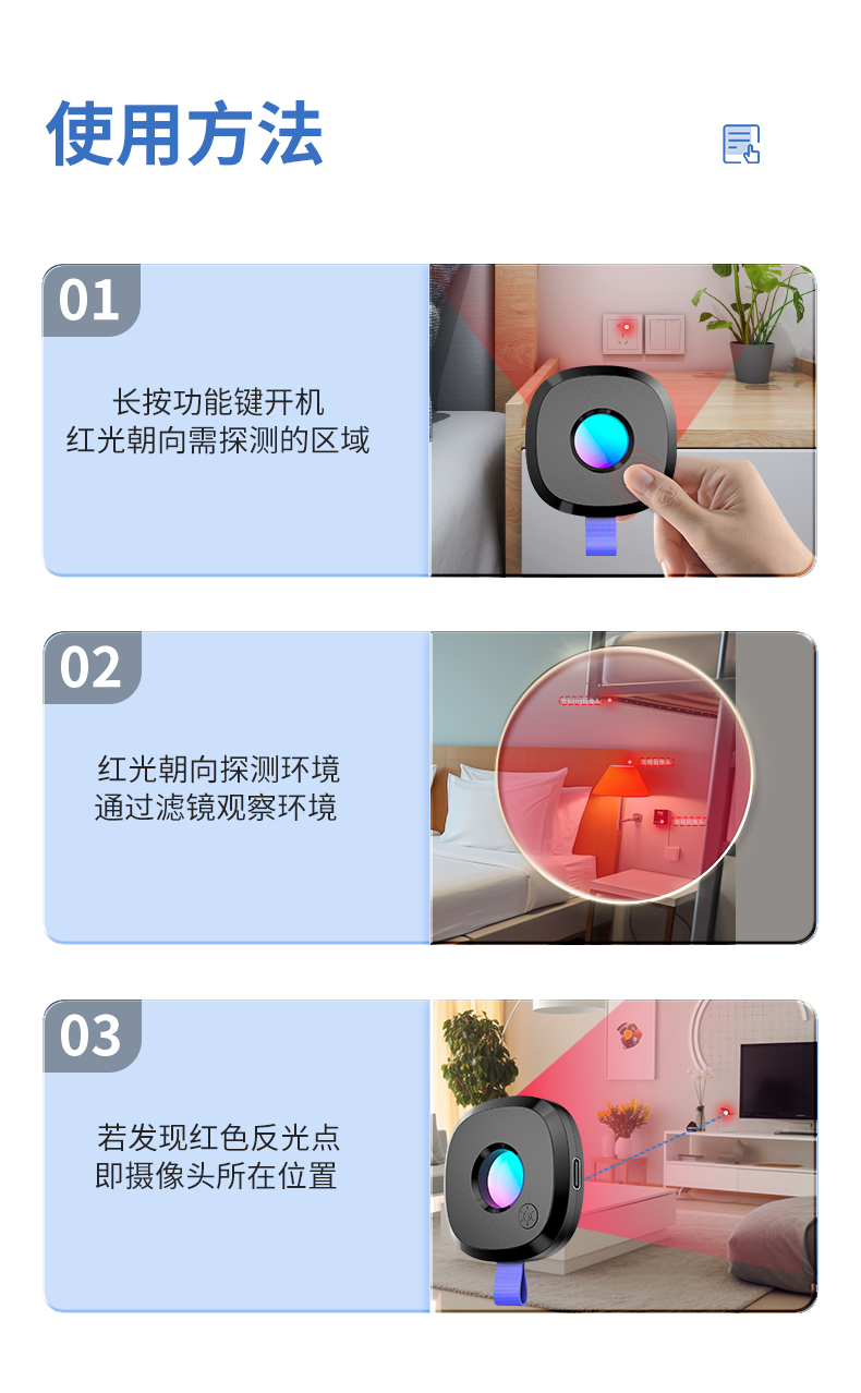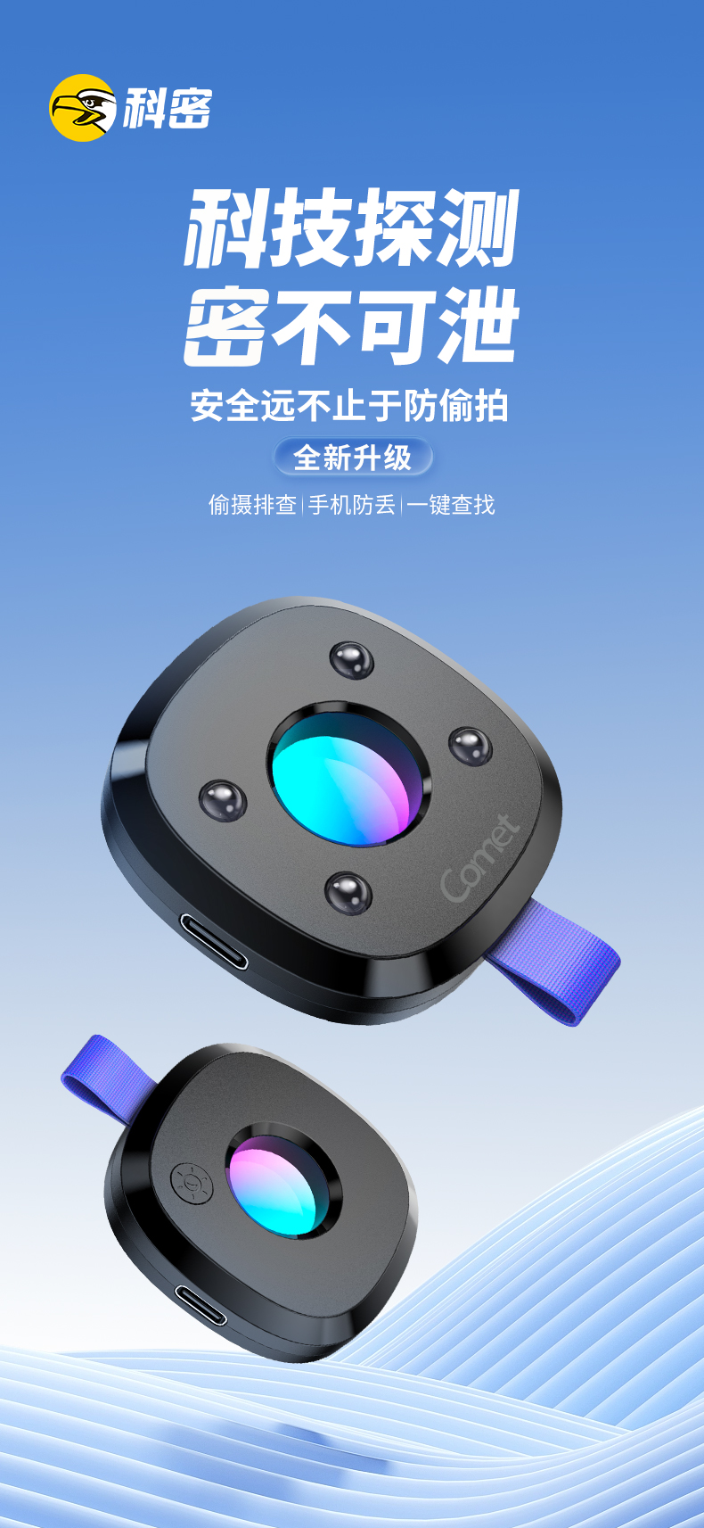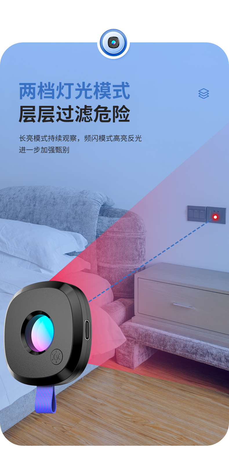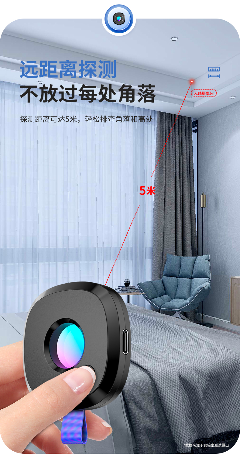 科密 KD06 酒店攝像頭探測器 物品防丟器 防拍攝檢測儀 可充電防監(jiān)控掃描檢測器 黑色