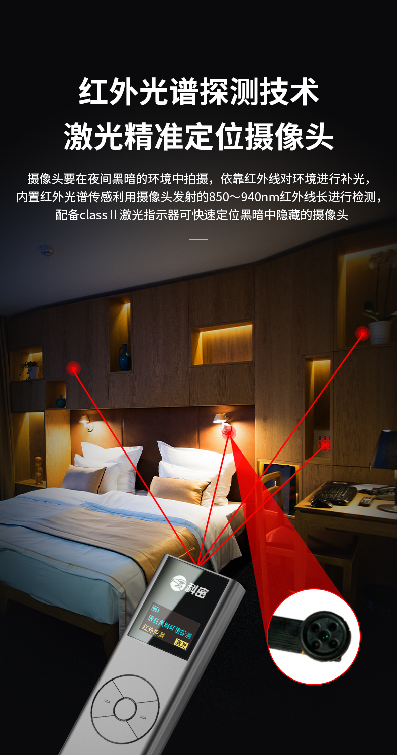 科密攝像頭探測(cè)器防酒店偷拍防竊聽(tīng)GPS防定位跟蹤探測(cè)儀KD50
