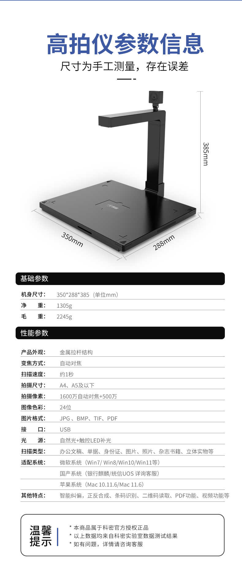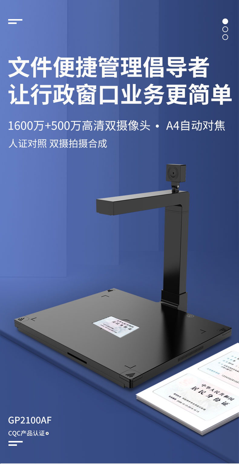 科密(comet) GP2100AF 高拍儀 1600萬+500萬像素雙攝A4掃描儀 文件PDF合成 銀行行政中心 適配國產(chǎn)系統(tǒng)
