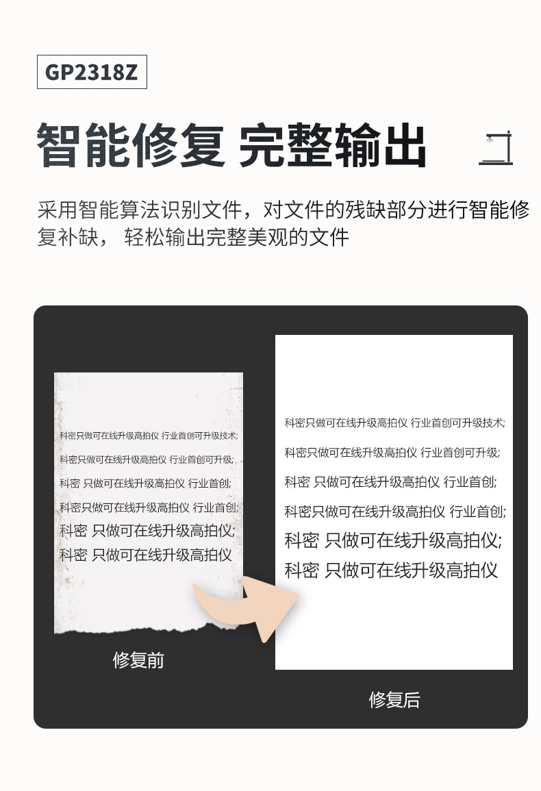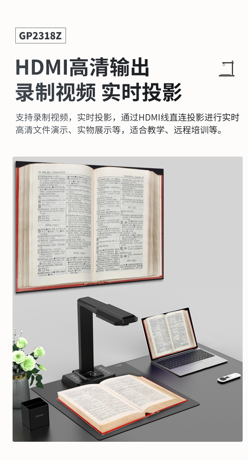 科密(comet) GP2318Z 高拍儀 2600萬像素 可在線升級(jí)掃描儀 A3A4文件PDF合成 HDMI 書籍展平 國產(chǎn)系統(tǒng)