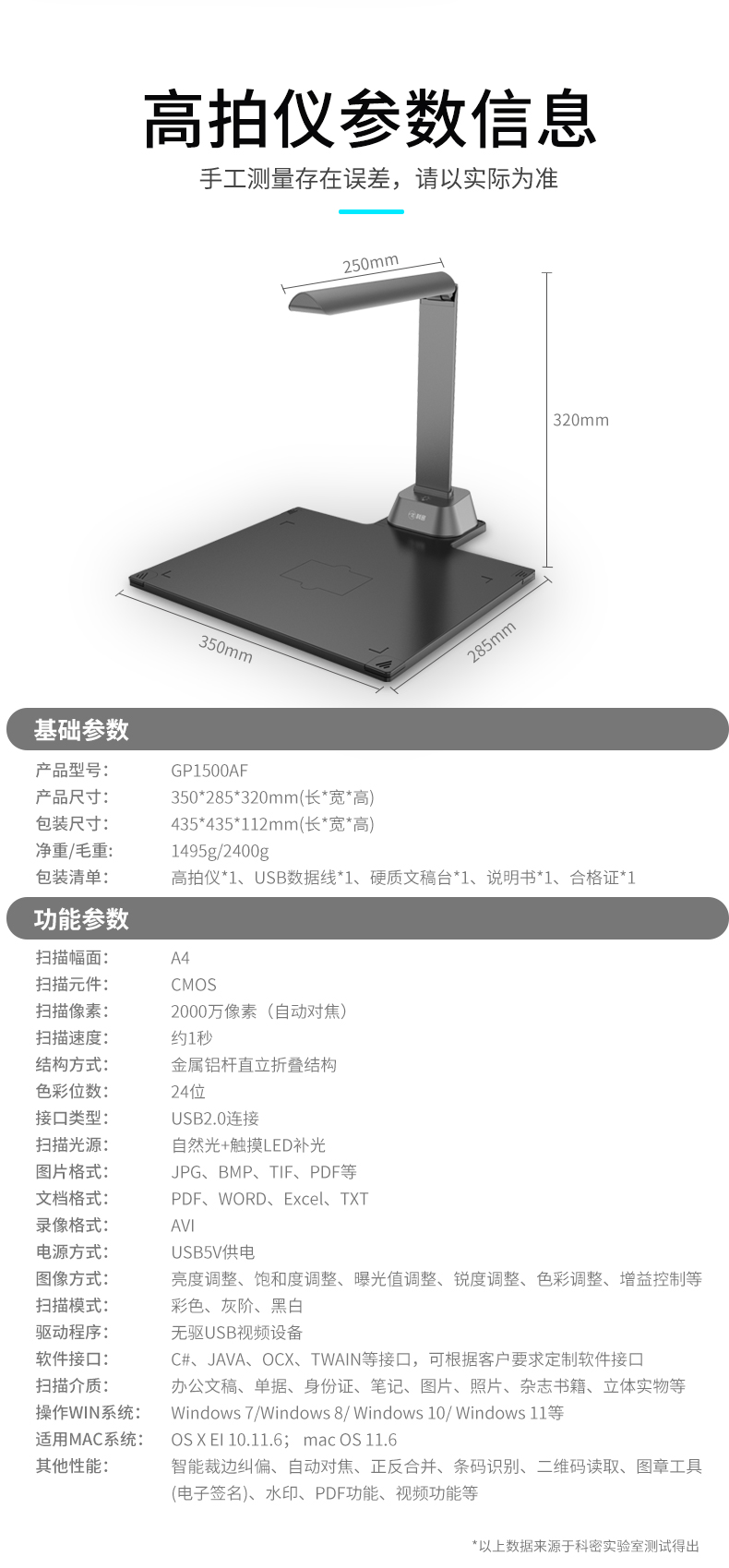 科密(comet) GP1500AF 高拍儀 2000萬(wàn)像素 可在線(xiàn)升級(jí)掃描儀 A4文件PDF合成 OCR識(shí)別 適配國(guó)產(chǎn)系統(tǒng)