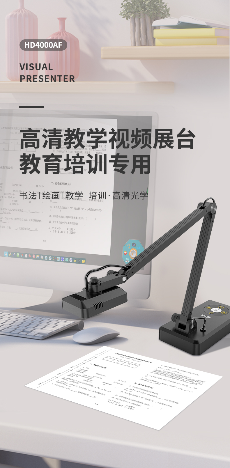 科密(comet) HD4000AF 1300萬像素 視頻展臺(tái)高拍儀掃描儀 A3A4試卷書法教學(xué)網(wǎng)課投影展示臺(tái) 國產(chǎn)系統(tǒng)