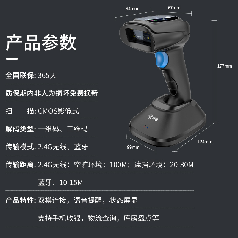 科密(comet)EW-5800Z 無線一二維碼掃描槍條碼槍 屏幕收銀 超市醫(yī)保掃碼器配充電座 支持國產系統(tǒng)