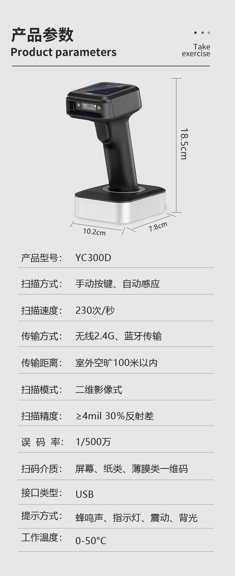 科密(comet)YC300D 掃描槍無線掃碼槍 藍(lán)牙一二維碼條碼槍 物流倉庫餐飲商超藥店收銀醫(yī)保碼 配充電座