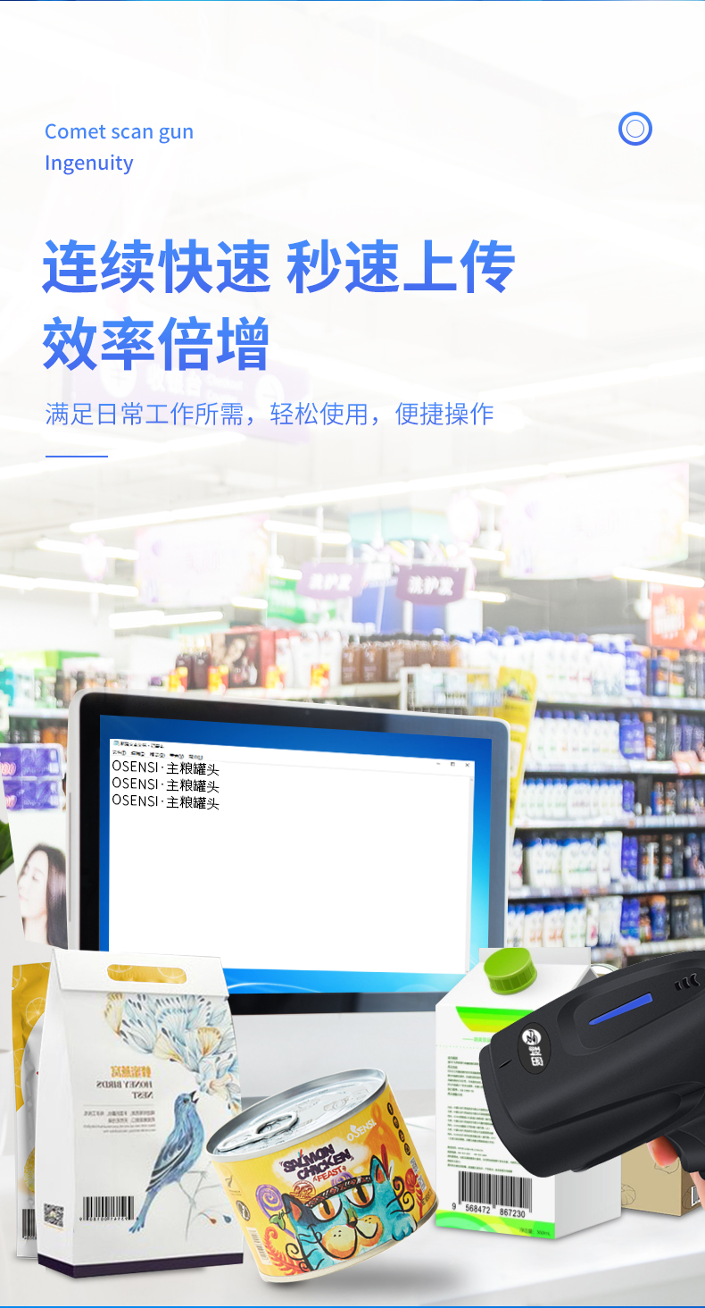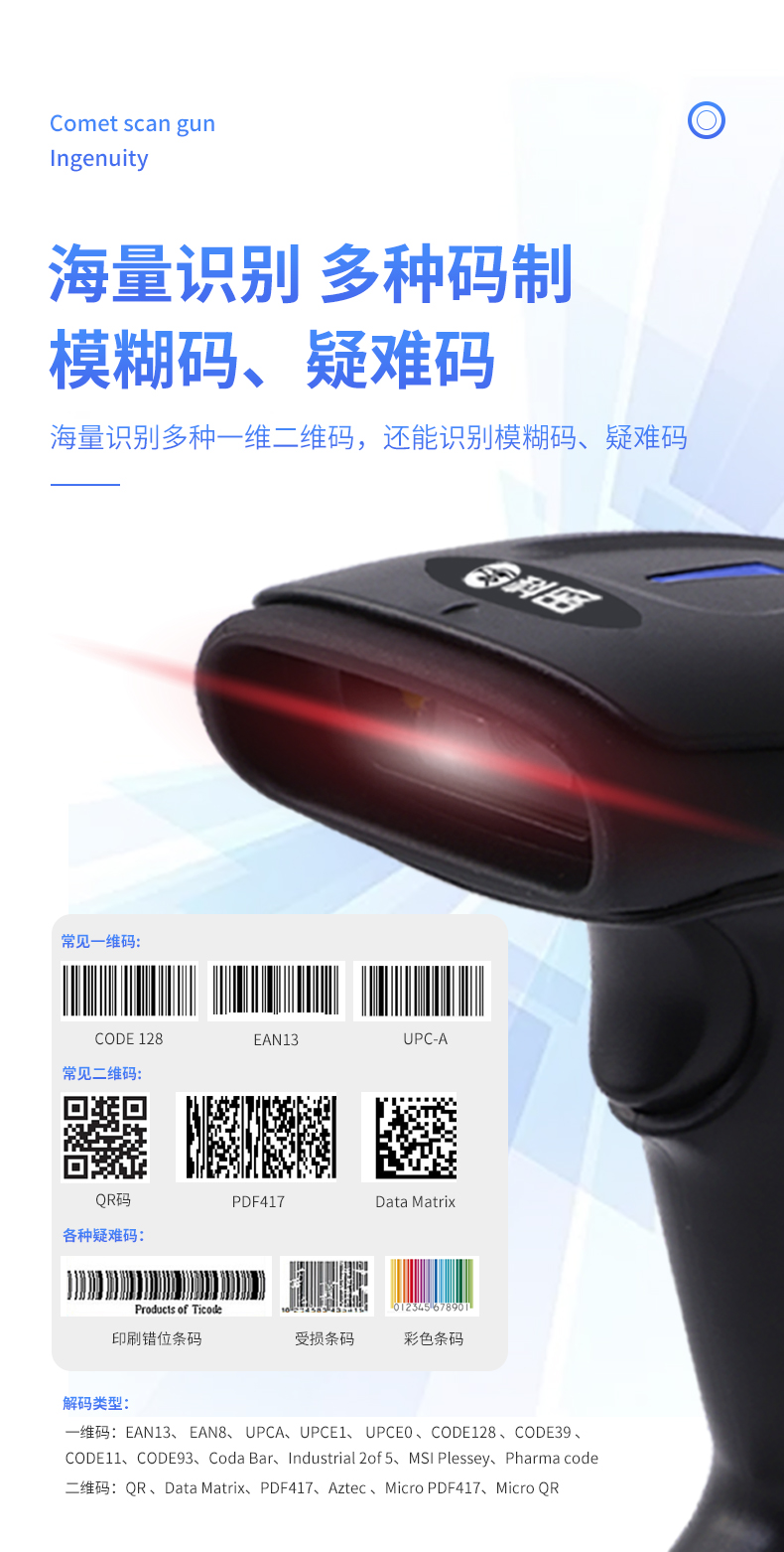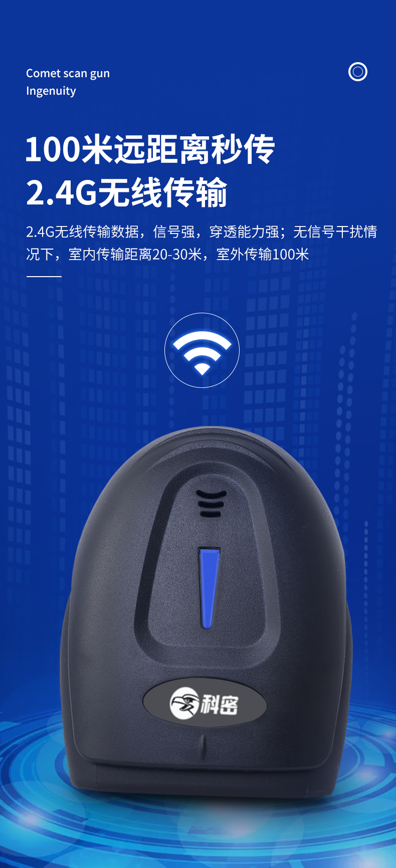 科密(comet)四星無線掃描槍一二維碼條碼槍掃碼槍 商超煙酒零售服裝藥店 商品碼金屬碼微小碼醫(yī)保碼掃碼器
