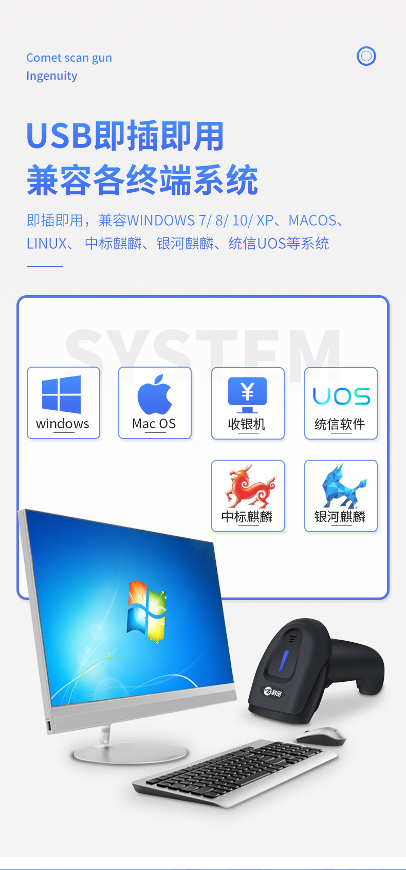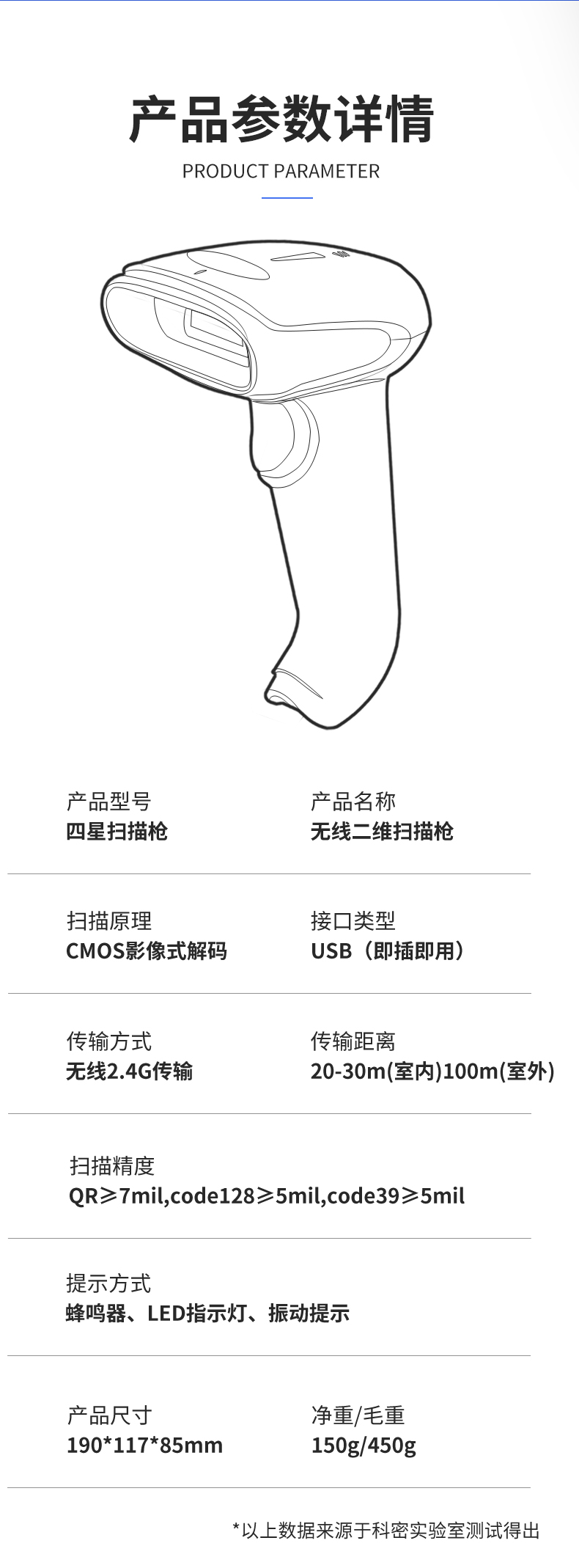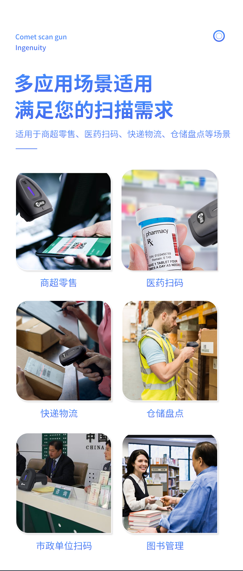 科密(comet)四星無線掃描槍一二維碼條碼槍掃碼槍 商超煙酒零售服裝藥店 商品碼金屬碼微小碼醫(yī)保碼掃碼器