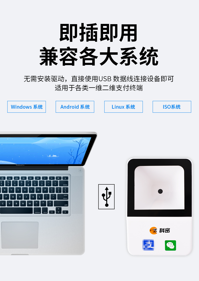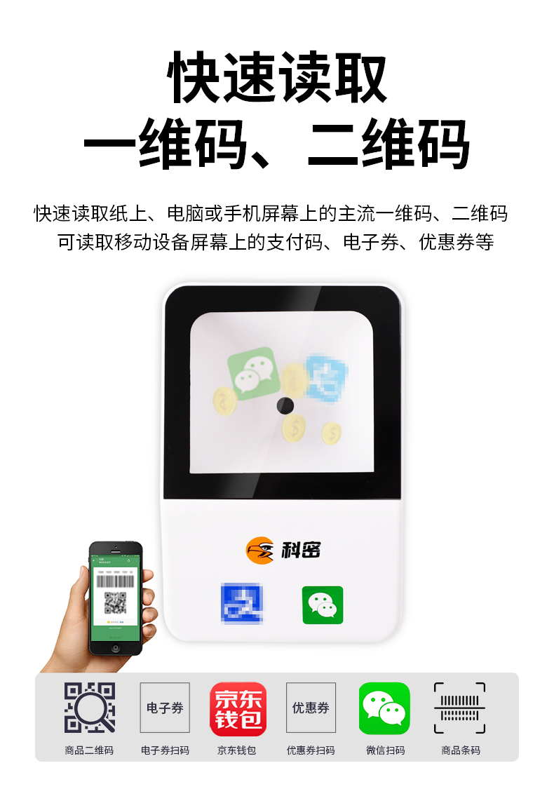 科密(comet)EF09掃描槍掃碼盒子有線一二維碼掃描平臺收銀掃碼槍 超市餐飲便利店藥店支付掃碼盒醫(yī)保碼