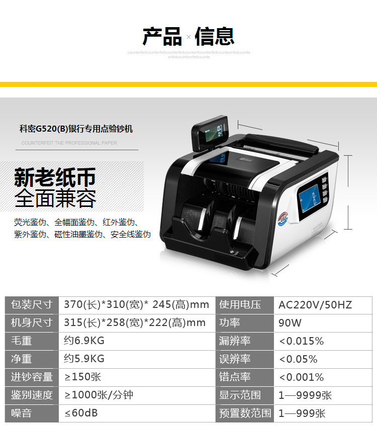 科密(comet)新版人民幣驗鈔點鈔機 銀行家用商用專用國標B類點鈔數(shù)錢機 三屏智能語音可新舊混點G520