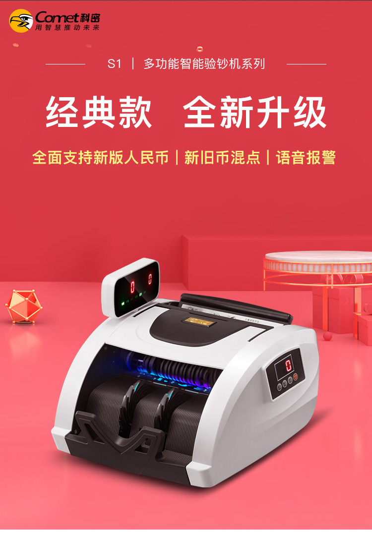 科密(comet)驗(yàn)鈔點(diǎn)鈔機(jī)支持新版人民幣 小型家用商用收銀支付 新舊混點(diǎn)語(yǔ)音便攜雙屏C級(jí)數(shù)鈔機(jī)S1