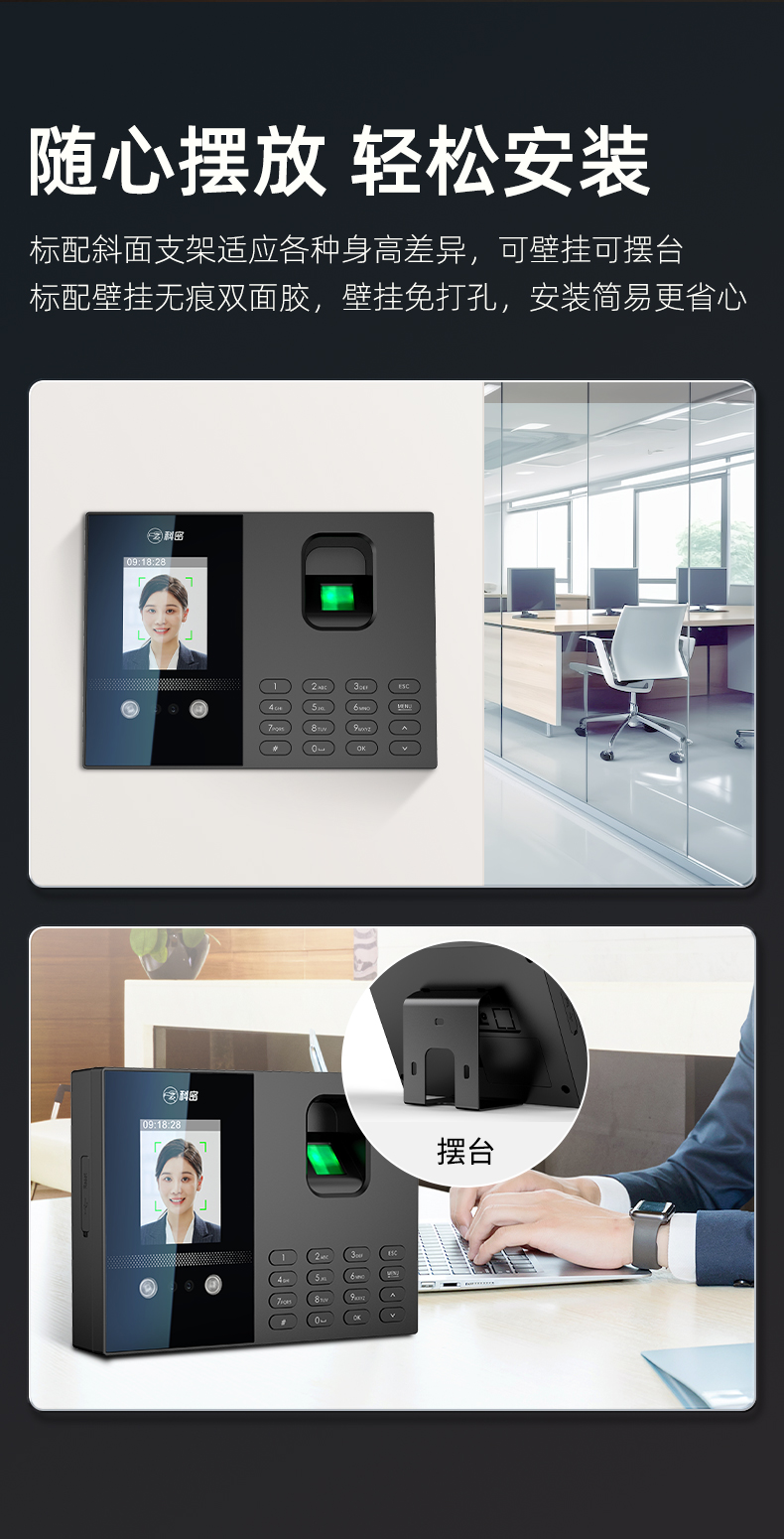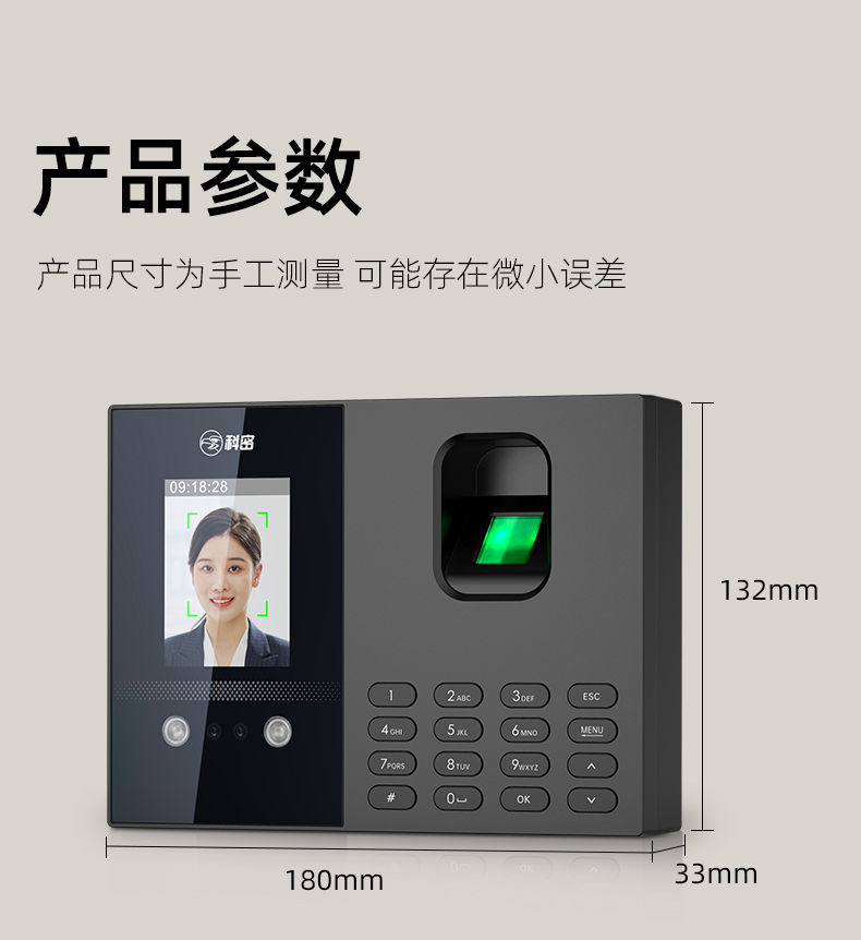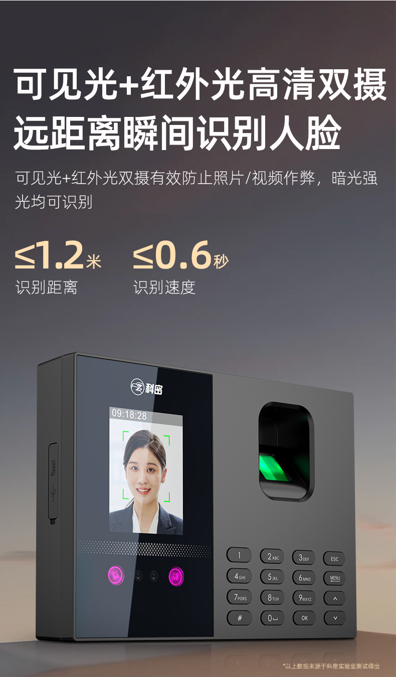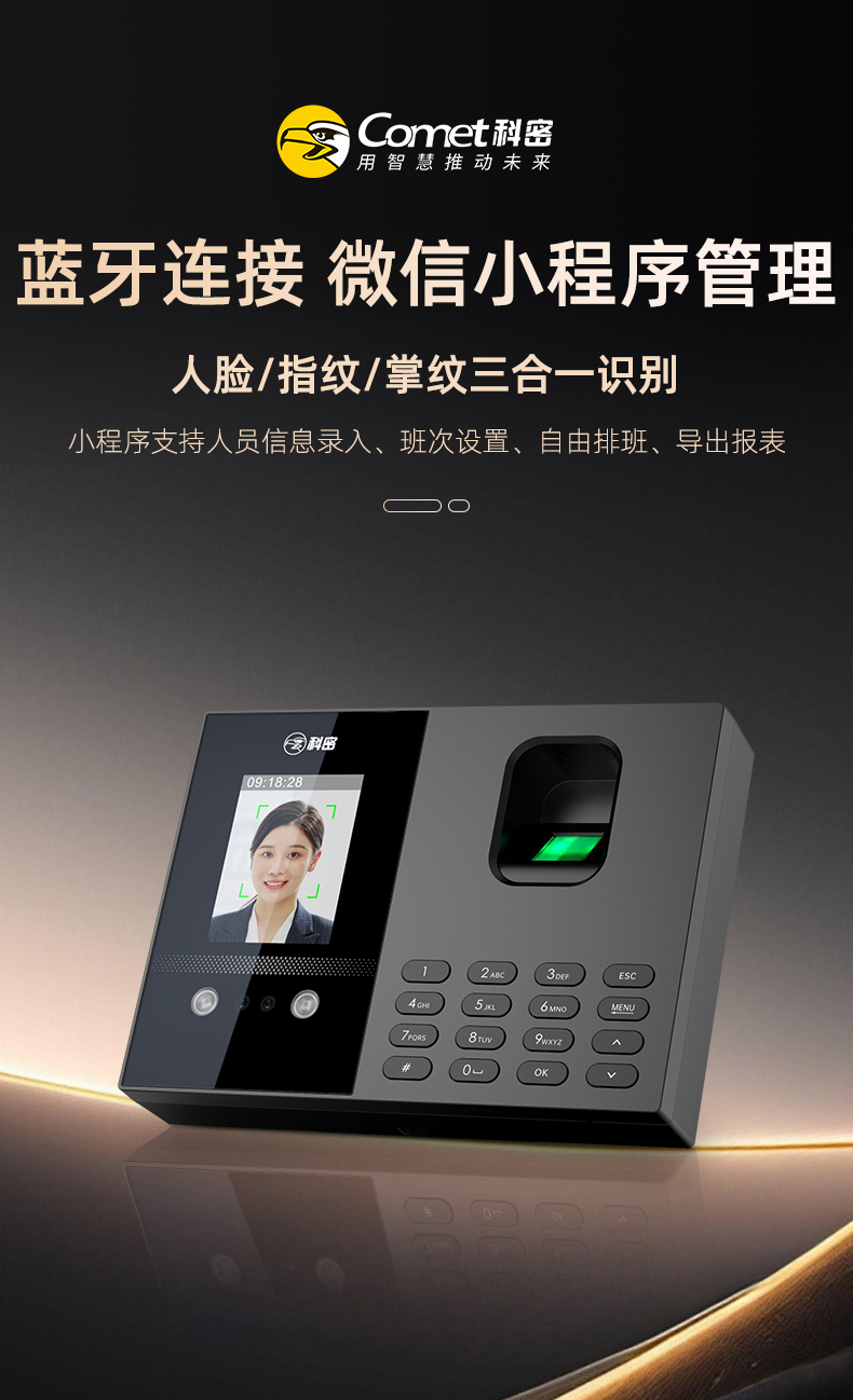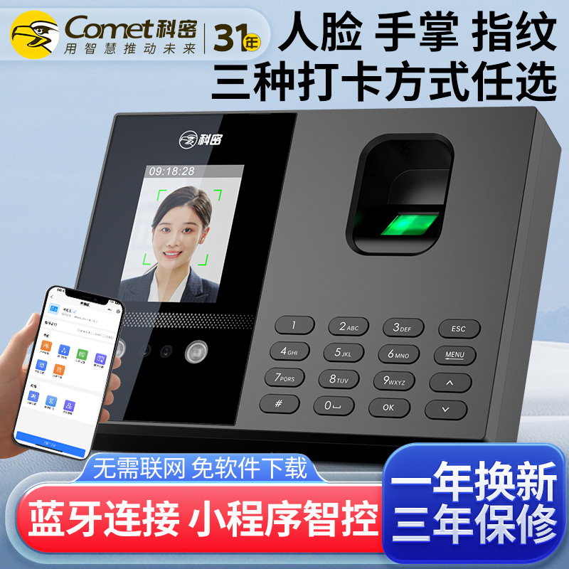 科密(comet)考勤機 打卡機人臉+指紋+掌紋識別考勤機 藍牙連接 小程序管理 自動生成報表FC02W