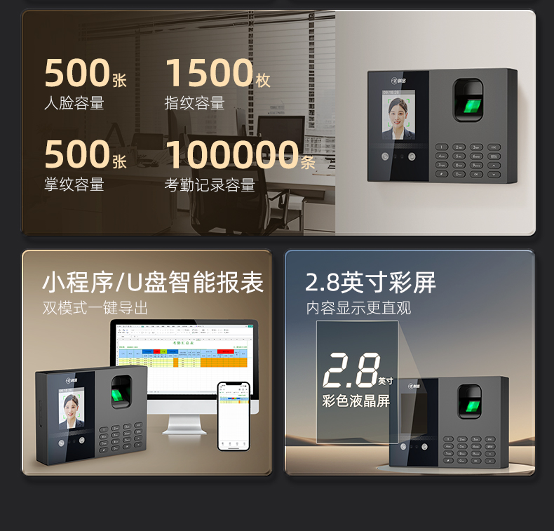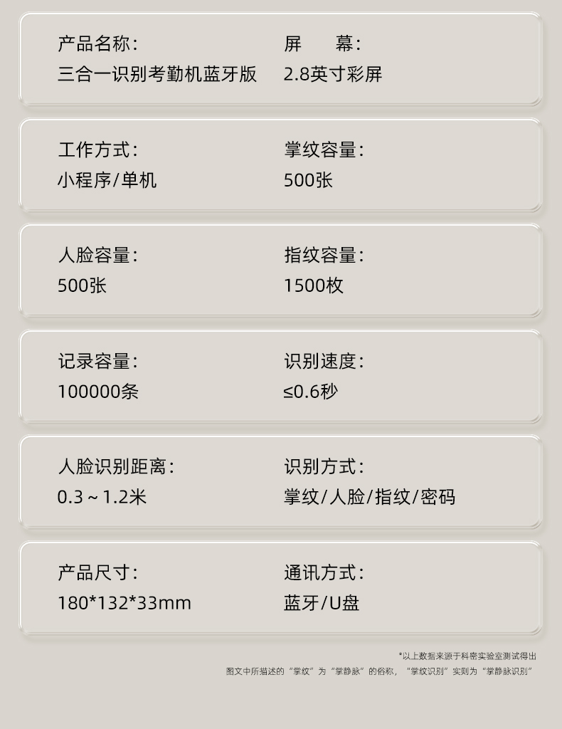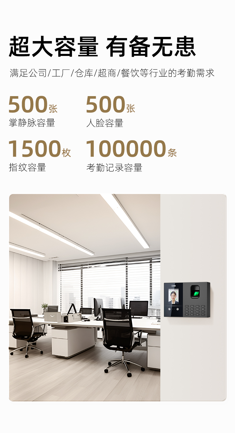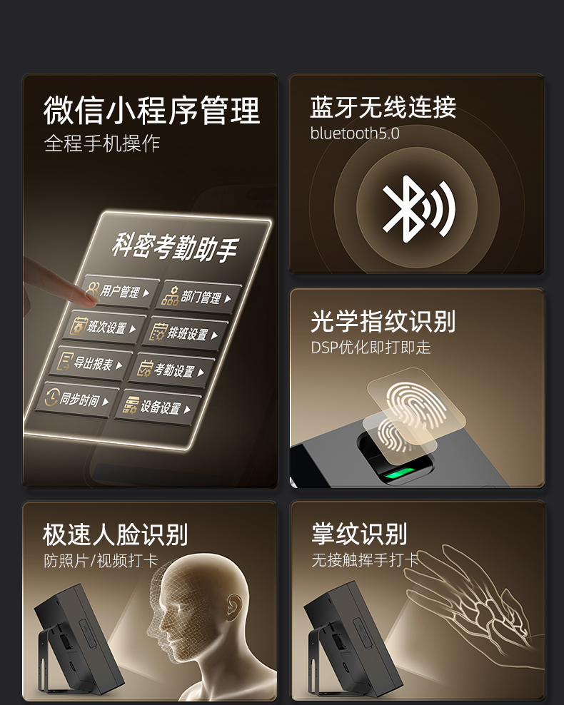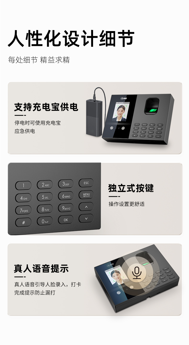 科密(comet)考勤機 打卡機人臉+指紋+掌紋識別考勤機 藍牙連接 小程序管理 自動生成報表FC02W
