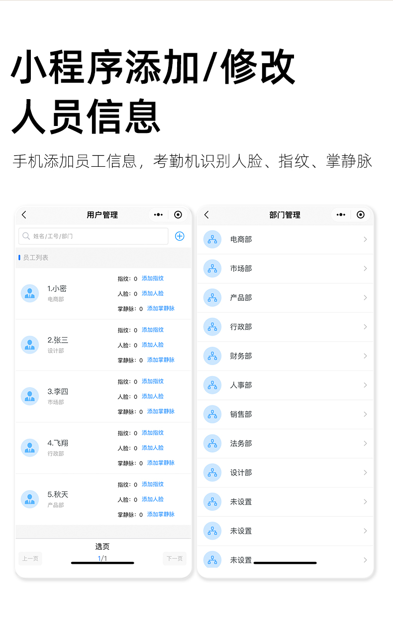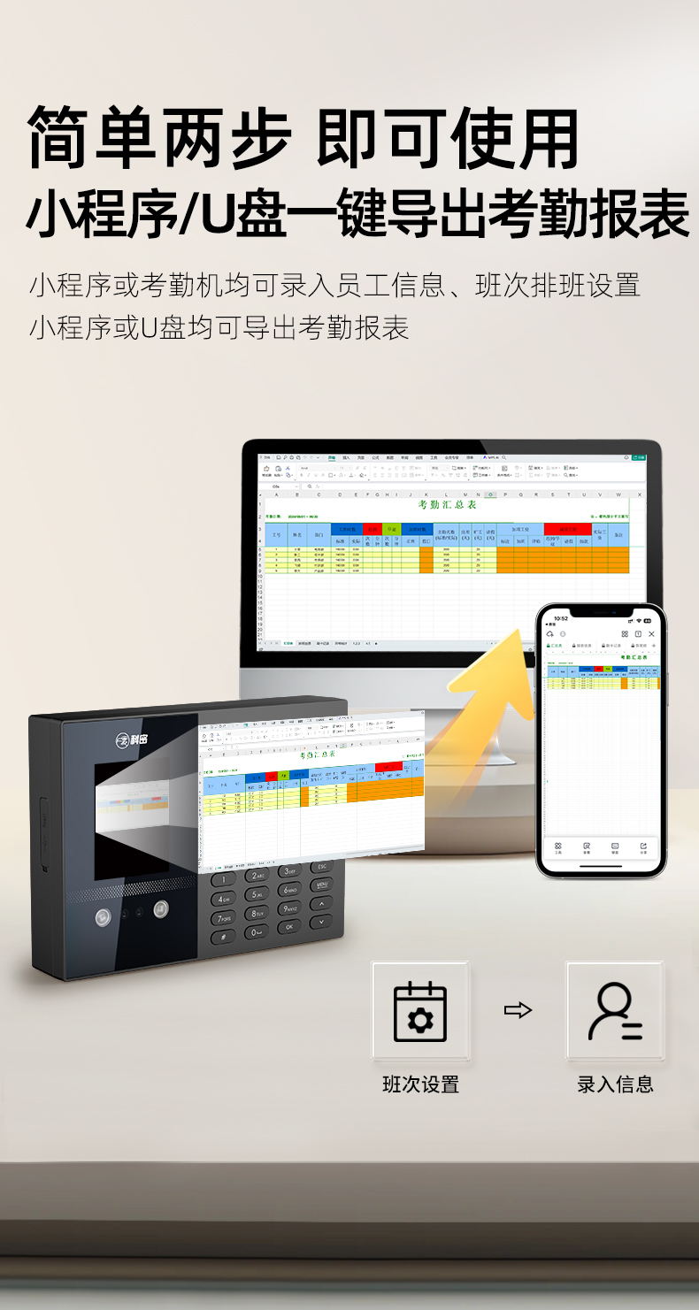 FC02W人臉+指紋+掌紋識別考勤機(藍牙小程序版)