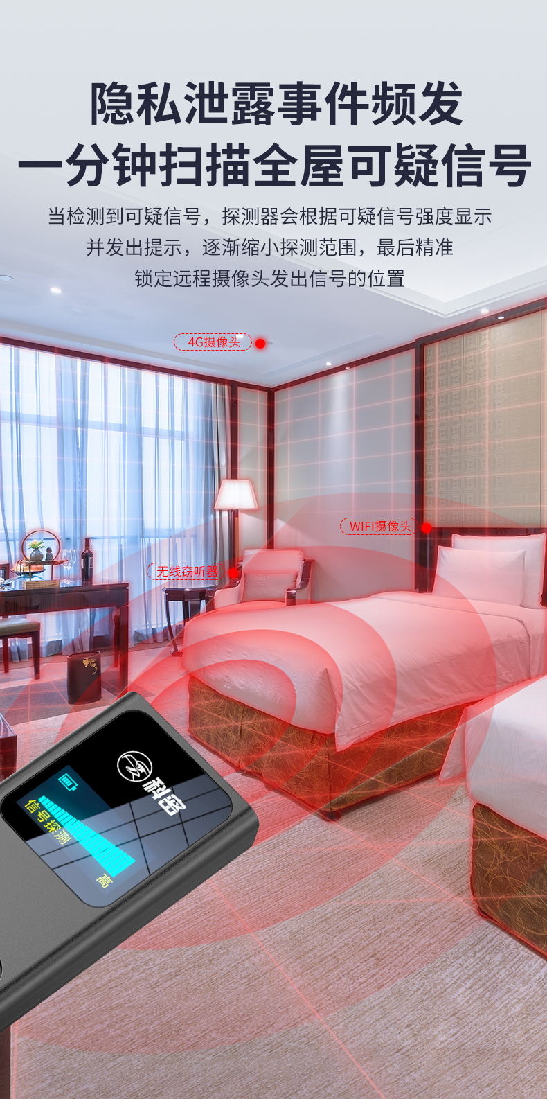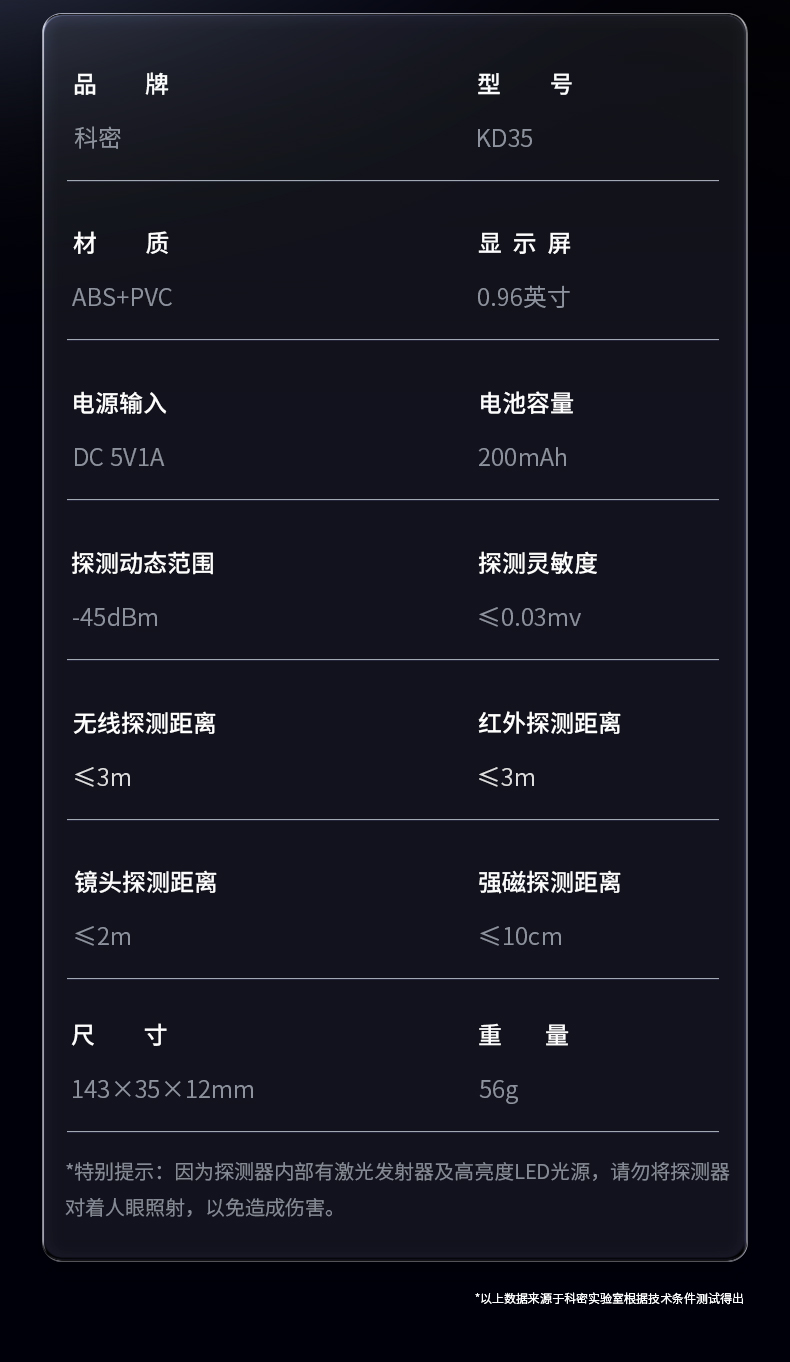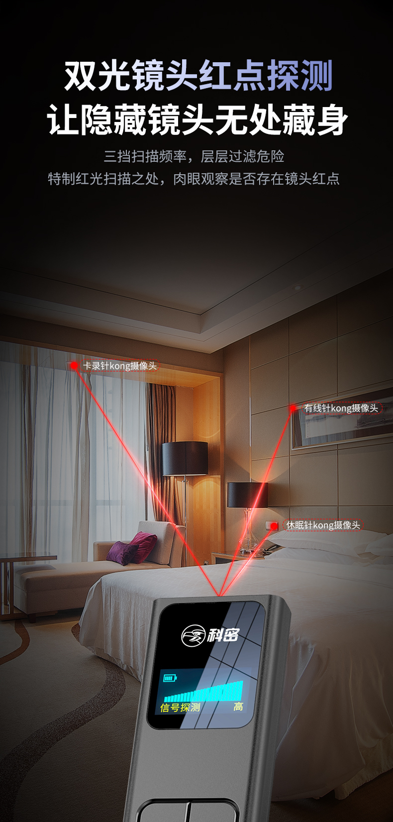 科密酒店攝像頭探測器GPS定位追蹤檢測紅外線信號探測儀防偷拍防竊聽 KD35
